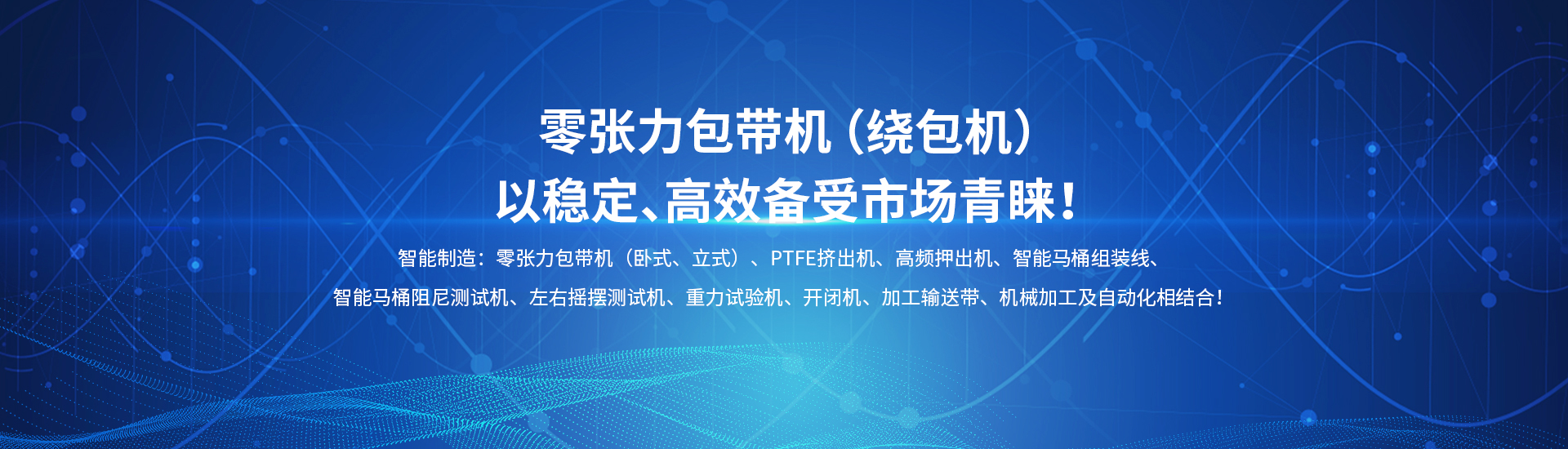 主要產品:押出機、包帶機、PTFE擠出機、智能電子坐便器組裝線、電子坐便器老化試驗臺、阻尼耐久試驗機…